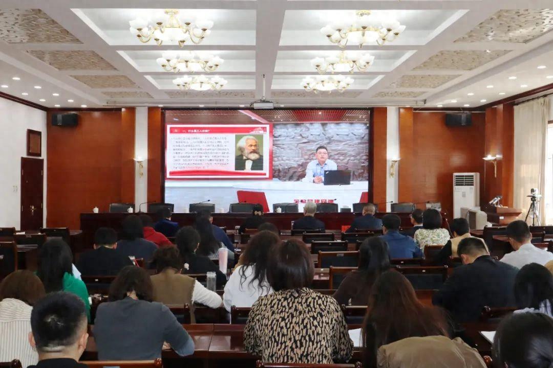 为进一步学习宣传贯彻习近平总书记重要讲话精神及中国工会十八大精神,3月13日下午,呼和浩特市总工会组织机关全体干部观看了中华全国总工会举办的,由中国劳动关系学院马克思主义学院副院长王多吉作的题为《全面把握“工人阶级”和“中国工会”两个概念的科学含义》的线上专题讲座。市总工会党组书记、副主席汪俊亭,市总工会党组成员、副主席云娜参加培训。