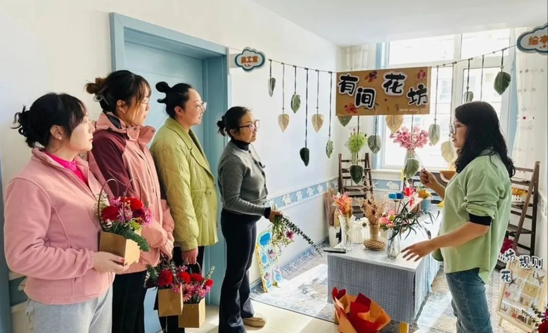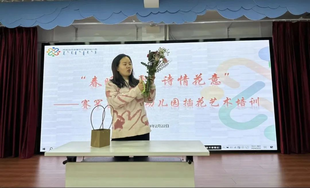 “三八”妇女节来临之际,为丰富教师精神文化生活,同时进一步拓展幼儿艺术教育内容,拓宽教师艺术领域的思维,促进教师更好的开展艺术教学活动,2月22日,赛罕区第四幼儿园邀请呼和浩特市袭人花店张敏对幼儿园教师进行插花艺术课程培训。