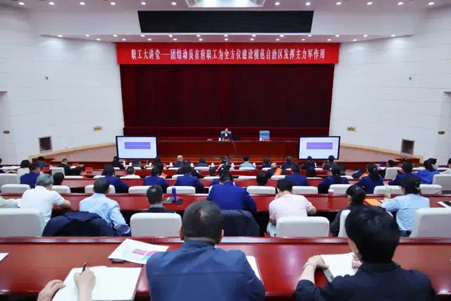 刘教授通过深入浅出地讲解,让参会职工对铸牢中华民族共同体意识与加强民族团结进步有了更进一步的深刻理解,尤其对全方位建设模范自治区中的若干基本问题的深层次解读,进一步推动了首府职工统一思想、统一意志、统一行动,为努力完成好习近平总书记交给内蒙古的“五大任务”和全方位建设“模范自治区”两件大事贡献主力军作用。