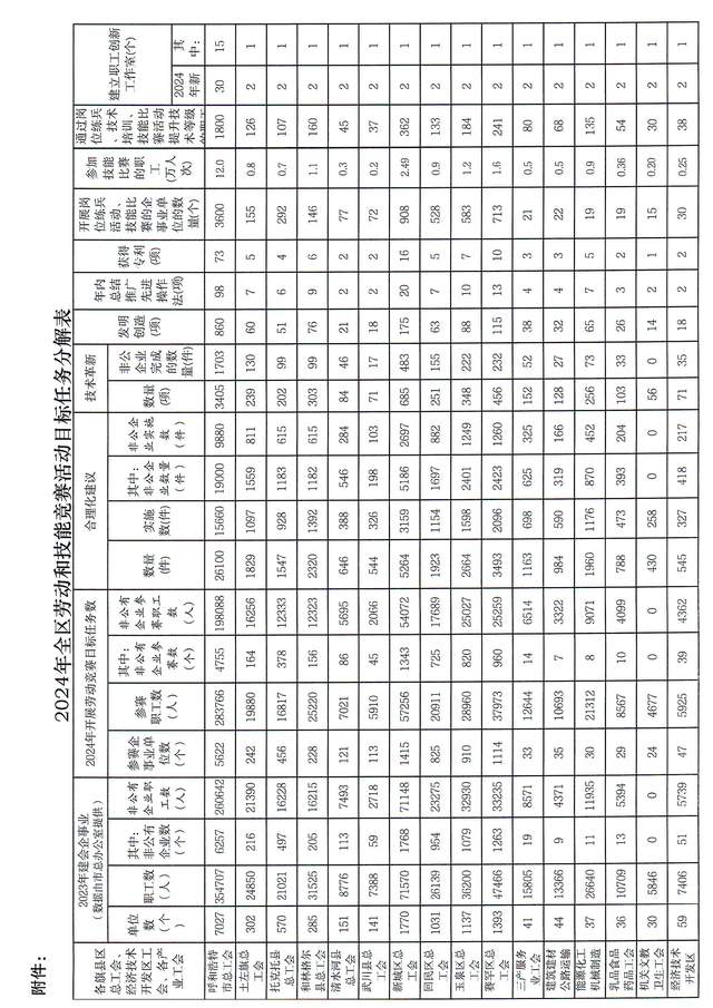 附件:2024年全市劳动和技能竞赛活动目标任务分解表