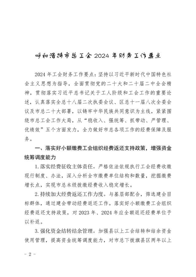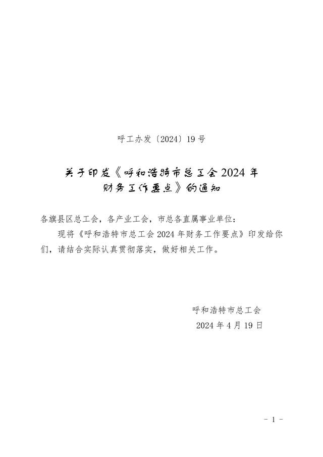 关于印发《呼和浩特市总工会2024年财务工作要点》的通知