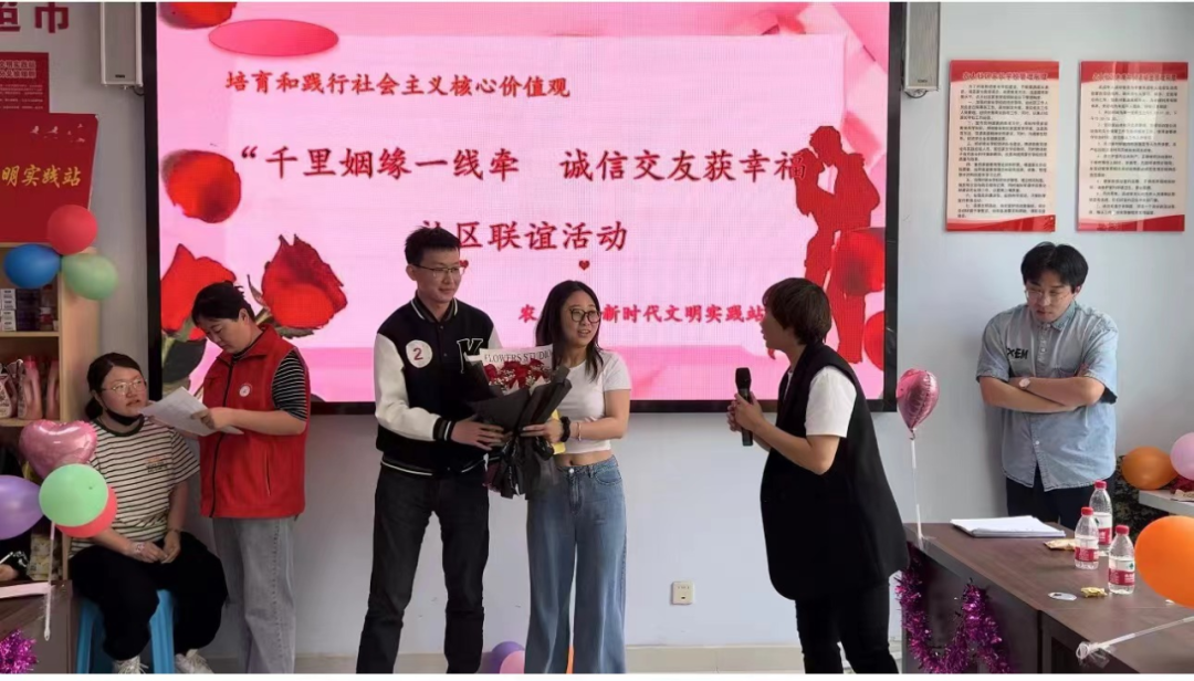 本次活动吸引了共计三十余位青年参加,工会工作人员为男女嘉宾设计了自我介绍、趣味游戏、互动问答、现场速配等环节。整场活动气氛热烈,大家在欢笑声中增进了了解,拉近了距离,现场共计四对有意向者互相留了联系方式并表示将进一步认识了解。联谊活动还吸引了众多亲友团到场支持,同样得到了辖区居民的高度关注和称赞,大家纷纷表示社区举办这样的活动很有意义,期待见证下一场浪漫的约定。 此次联谊,农大社区联合工会作为联系职工的桥梁和纽带旨在发挥联合工会的组织优势,为青年职工提供贴心的服务保障和充分的关心关爱,培养广大青年积极向上的生活态度和正确的爱情观、价值观,为构建幸福社区、和谐社区贡献工会力量。