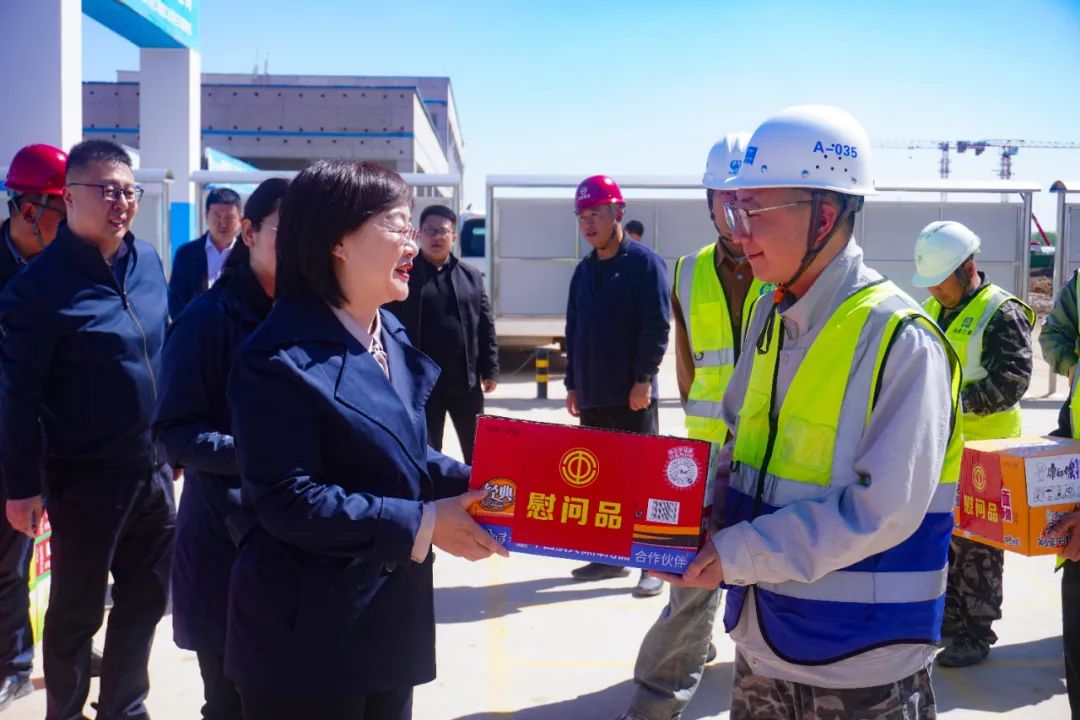 慰问组一行向坚守施工一线的广大劳动者们致以节日的祝福和诚挚的问候,并现场发放了慰问品。
