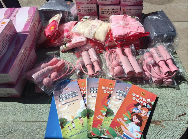 普法活动中共发放法律法规宣传资料100余份,接受群众咨询20余人次,并为女职工发放毛巾、跳绳、纸巾等宣传品。