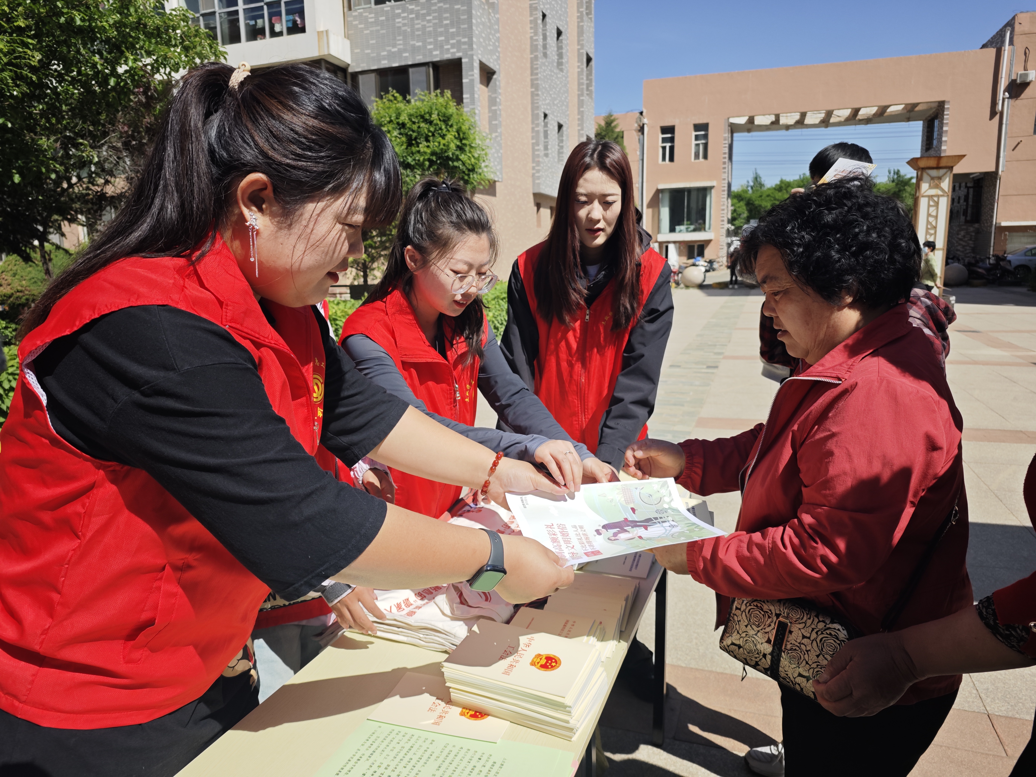 活动现场,旗总工会志愿者通过悬挂横幅、发放宣传彩页、发放倡议书等形式向围观居民解说高价彩礼给男女双方、家庭、社会等带来的不良影响,用通俗易懂的语言为在场的居民们介绍了高价彩礼的危害性以及如何用法律武器来维护自己在婚姻关系中的合法权益,反对攀比之风,以实际行动营造健康节俭的社会新风尚。