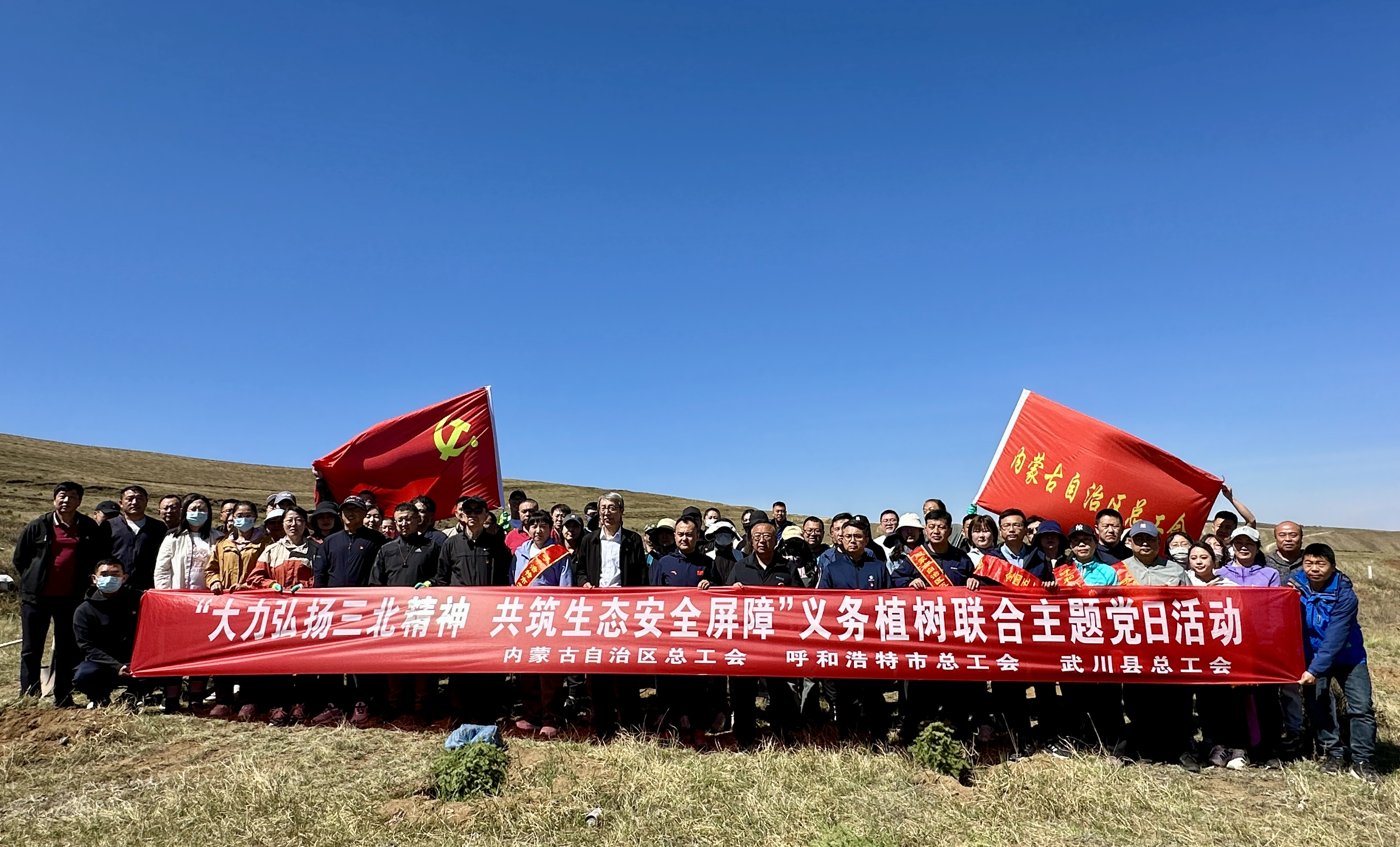 为深入学习贯彻习近平生态文明思想和习近平总书记参加首都义务植树时的重要指示精神,大力弘扬“三北精神”,牢固树立“绿水青山就是金山银山”的理念,5月8日,自治区总工会与呼和浩特市总工会、武川县总工会联合在武川县大青山乡四合义村北坡自治区总工会义务植树基地开展“大力弘扬三北精神 共筑生态安全屏障”义务植树主题党日活动。自治区总工会党组成员、副主席傲木格,自治区总工会二级巡视员王俊同驻会纪检监察组、区总机关各部门、驻会产业工会、直属事业单位、互助保障协会干部职工、呼和浩特市劳模代表以及武川县总工会全体干部职工参加活动。