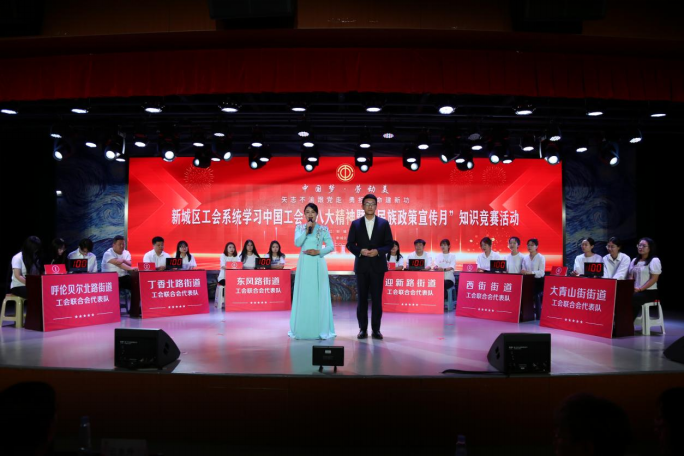 为铸牢中华民族共同体意识,深入学习贯彻中国工会十八大精神,增强新城区工会系统职工对中国工会十八大精神和工会业务知识的了解,营造“以赛促学、以学促知、以知促行”的学习氛围,新城区总工会于5月23日开展了“中国梦·劳动美——矢志不渝跟党走 勇担使命建新功”新城区工会系统学习中国工会十八大精神暨“民族政策宣传月”知识竞赛活动。