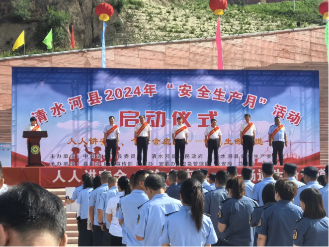 今年6月是第23个全国“安全生产月”,主题为“人人讲安全、个个会应急——畅通生命通道”。6月3日,由清水河县安委会主办、清水河县应急管理局承办、清水河县总工会协办的2024年“安全生产月”启动仪式在和清水河县博物馆广场举办,县委、政府、人大、政协、安委会成员单位及企事业单位职工代表参加启动仪式。