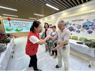 活动中,工作人员与清泉街社区的职工亲切交流,详细了解了他们的工作及生活情况,并为他们送上了鲜香美味的粽子及节日的祝福。工作人员和志愿者们把包粽子所需的粽叶、粽线、糯米、红枣等食材与材料都提前准备好,整齐的摆放在桌子上,大家围在一起捋粽叶、填糯米、封口、扎捆,不一会儿一个个饱满的粽子就完成了。大家互相交流经验和技巧、唠着家常、说着心里话,温馨而愉快。