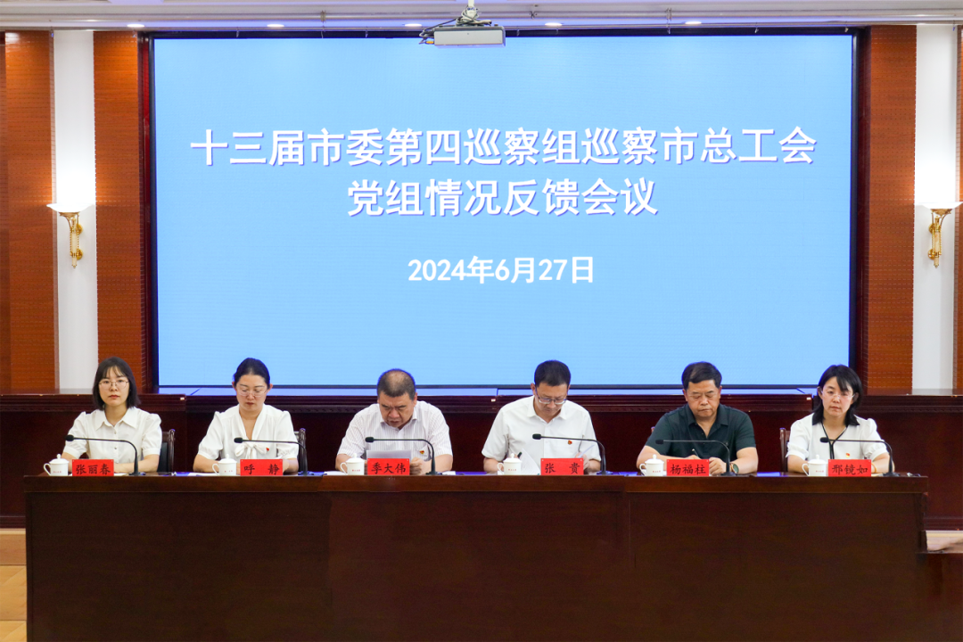 按照市委关于巡察工作的统一部署,6月27日下午,十三届市委第四巡察组在市总工会召开市委第四巡察组巡察市总工会党组情况反馈会议。会议由市委巡察工作领导小组办公室副主任季大伟主持。会议传达学习了自治区党委常委、市委书记包钢专题听取第五轮巡察情况汇报时的讲话精神;市委第四巡察组组长张贵对巡察市总工会党组情况进行了反馈;季大伟对抓好巡察整改工作提出具体要求;市总工会党组书记、副主席汪俊亭作表态发言。