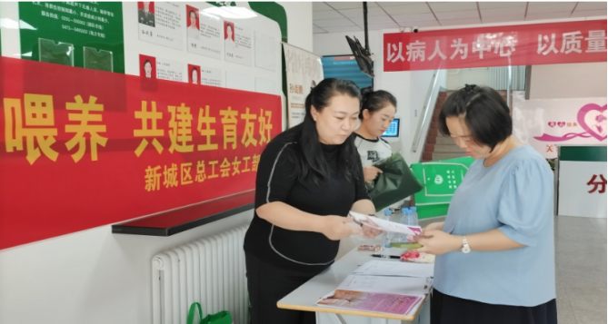 今年的8月1日至7日是第33个世界母乳喂养周,为普及科学母乳喂养观,倡导社会各界携手促进母乳喂养,进而提升母乳喂养率,保障母婴健康。新城区总工会在969医院妇产科门诊开展了以“支持母乳喂养 共建生育友好”为主题的世界母乳喂养周宣传活动。