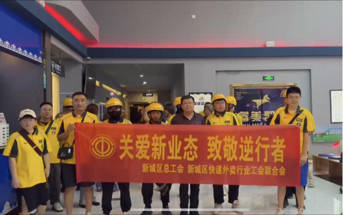 为进一步加强对新就业形态劳动者的关心关爱,激发“外卖骑手”的活力与热情,8月10日,新城区总工会、新城区快递外卖配送行业工会联合会组织骑手们在七夕节一同观影,让骑手们感受来自工会大家庭的温暖和关怀。