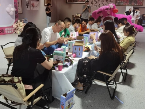 “桃花朵朵开”游戏更是将现场氛围推向了高潮。参与者围成一圈,随着主持人的口令变化迅速组队,每一次的重新组合都像是命运的安排,让原本陌生的灵魂有机会相互靠近,在不经意间发现了彼此之间的默契,随着游戏的深入,大家之间的距离被悄然拉近。最后,活动进入了一个温馨的环节——结伴做手工。在这个过程中,爱情的种子在不经意间萌发,也许就在某个抬头对视的瞬间,两颗心便紧紧相连。