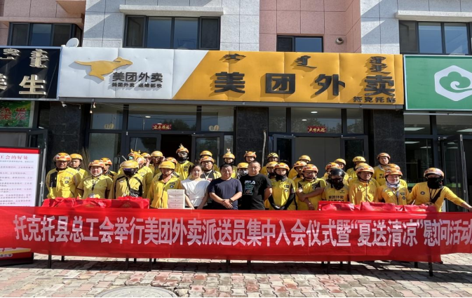 为进一步推进我县新业态劳动者建会入会工作,不断扩大工会组织和工会工作的有效覆盖面。8月7日上午,托克托县总工会举行美团外卖派送员集中入会仪式暨“夏送清凉”慰问活动。
