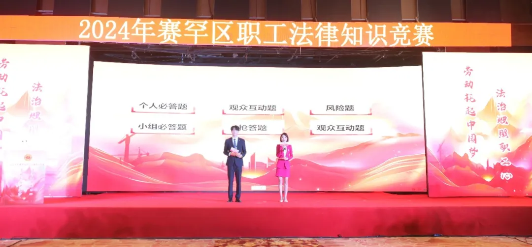 为贯彻落实习近平法治思想,全面推进“八五”普法工作,提升职工法律意识,营造学法、尊法、守法、护法的良好氛围,8月6日,呼和浩特市赛罕区总工会举办2024年“劳动托起中国梦·法治烛照职工心”全区职工法律知识竞赛。赛罕区人大三级调研员、总工会主席黄淑琴,呼和浩特市总工会法工部部长尉军,赛罕区总工会党组副书记朱国平,赛罕区总工会党组成员、副主席刘剑,赛罕区总工会党组成员、副主席李慧,赛罕区总工会办公室主任、赛罕区职工服务中心主任赵致晖出席活动。