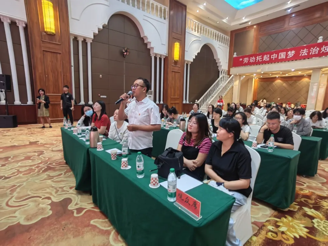 经过前期预赛,最终六支代表队进入决赛。决赛中,参赛队员们围绕《宪法》《民法典》《劳动法》《劳动合同法》《劳动争议调解仲裁法》《工会法》《保障农民工工资支付条例》等法律知识开展了激烈角逐。他们凭借各自丰富的知识储备、扎实的理论素养以及默契的团队配合,比脑力、拼速度,沉稳应战,对答如流,展现出比学赶超、昂扬向上的精神面貌。