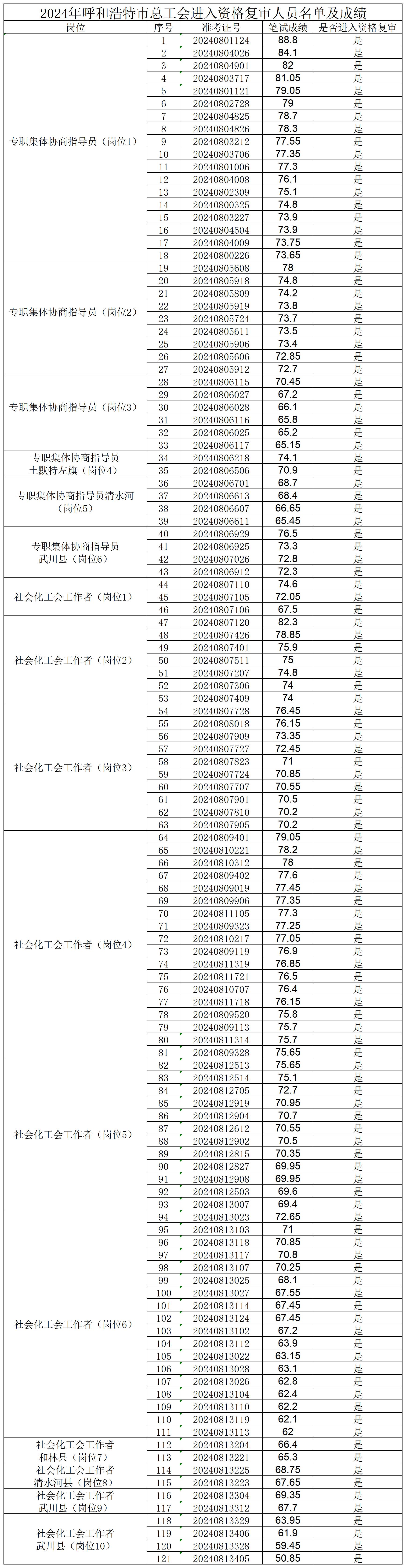 呼和浩特市总工会2024年集体协商指导员、社会化工会工作者笔试及阅卷工作已于2024年8月18日结束。现将笔试成绩查询和资格复审、面试相关事宜通知如下: