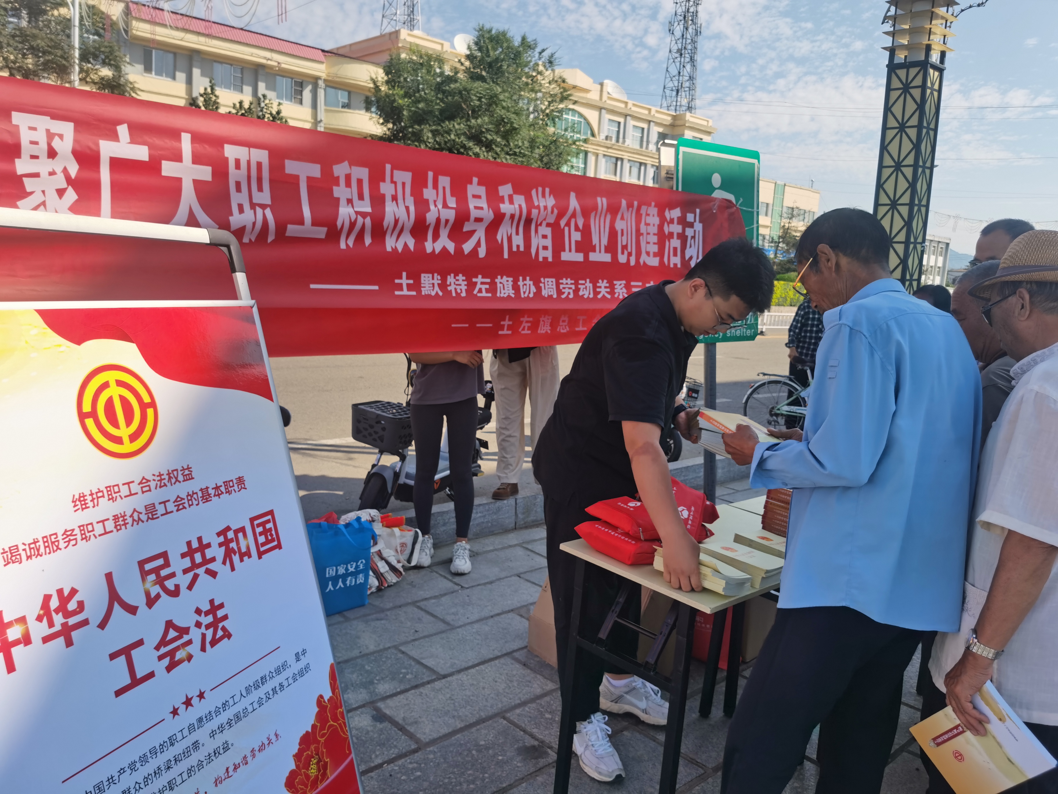 为深入推进和谐劳动关系的构建,加强劳动保障法律法规普及与教育,近日,土左旗协调劳动关系三方委员会成员单位——旗总工会、旗人社局、旗工商联,以八月“构建和谐劳动关系宣传月”为契机,在原政府广场和合众创亚(呼和浩特)包装有限公司举办了以“发挥工会职能作用,凝聚广大职工积极投身和谐企业创建活动”为主题的宣传活动。