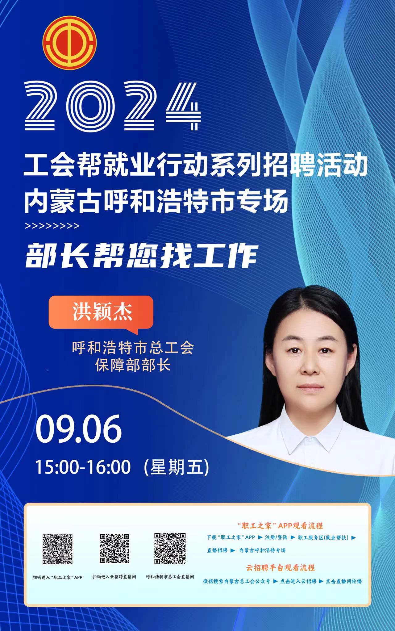 直播预告 | 工会帮就业行动系列招聘活动内蒙古呼和浩特市专场--部长帮你找工作