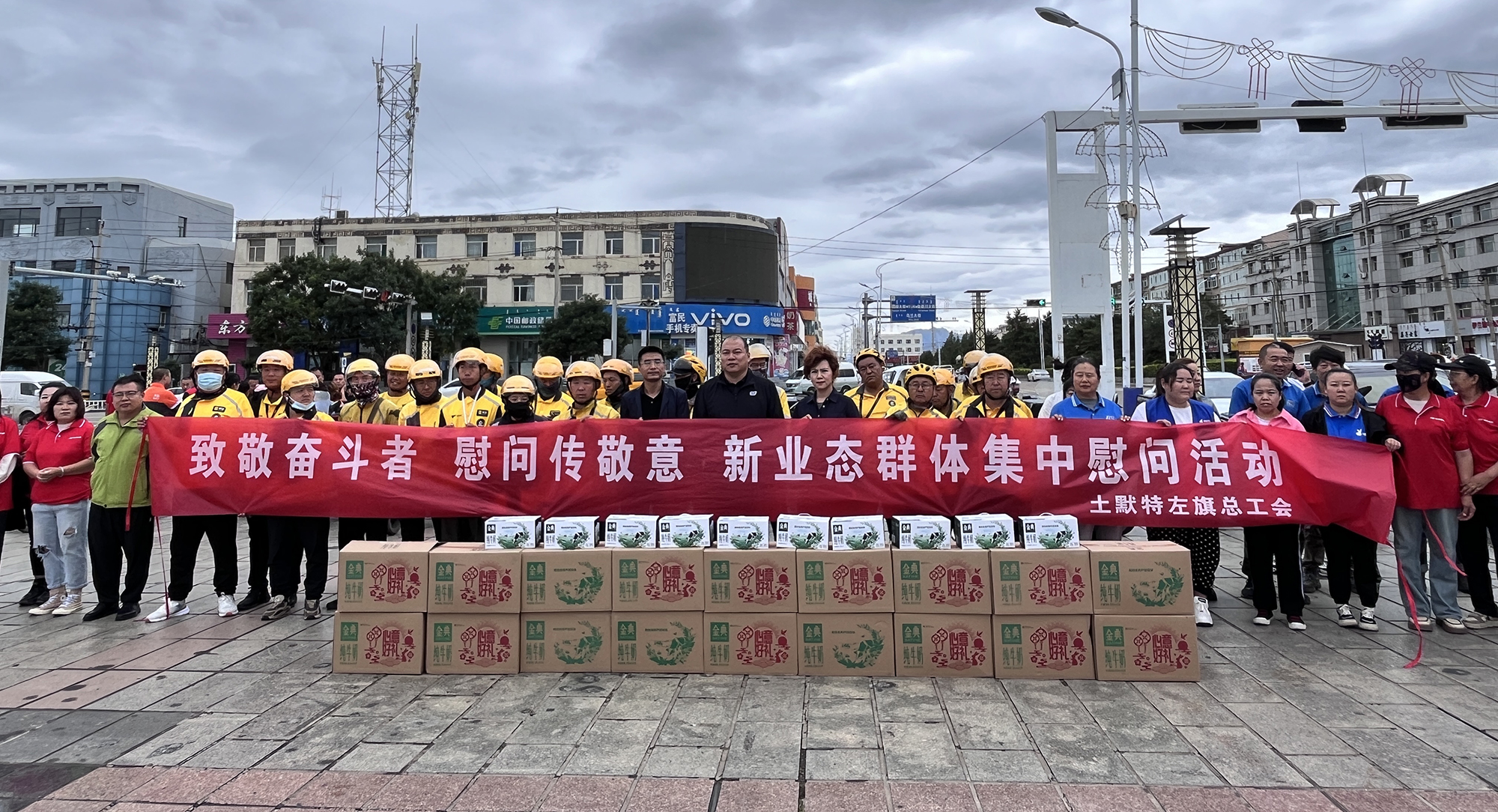 为深入学习贯彻党的二十大精神,落实习近平总书记关于新业态新就业群体有关工作的重要指示批示精神,强化对于新业态新就业群体的关爱力凝聚力,将“娘家人”的关怀送到职工身边。9月4日,土左旗总工会开展了致敬奋斗者,慰问传敬意——关爱新业态群体活动。旗总工会党组书记、常务副主席伊赫;旗总工会党组成员、副主席荣晔;旗总工会党组成员、副主席霍瑞峰出席活动,旗总工会相关负责同志和新业态新就业群体代表等100余人参加。
