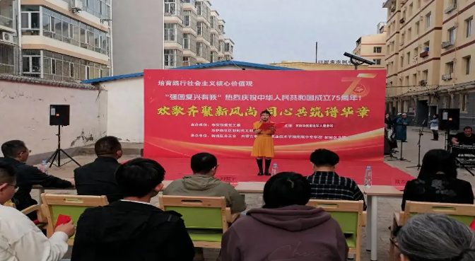 9月27日,新城区总工会联合东护南社区在东护南社区新城公寓共同举办“欢歌齐聚新风尚 同心共筑谱华章”建国75周年主题文艺演出,庆祝中华人民共和国成立75周年,进一步推动“感党恩、听党话、跟党走”群众教育实践活动走深走实。