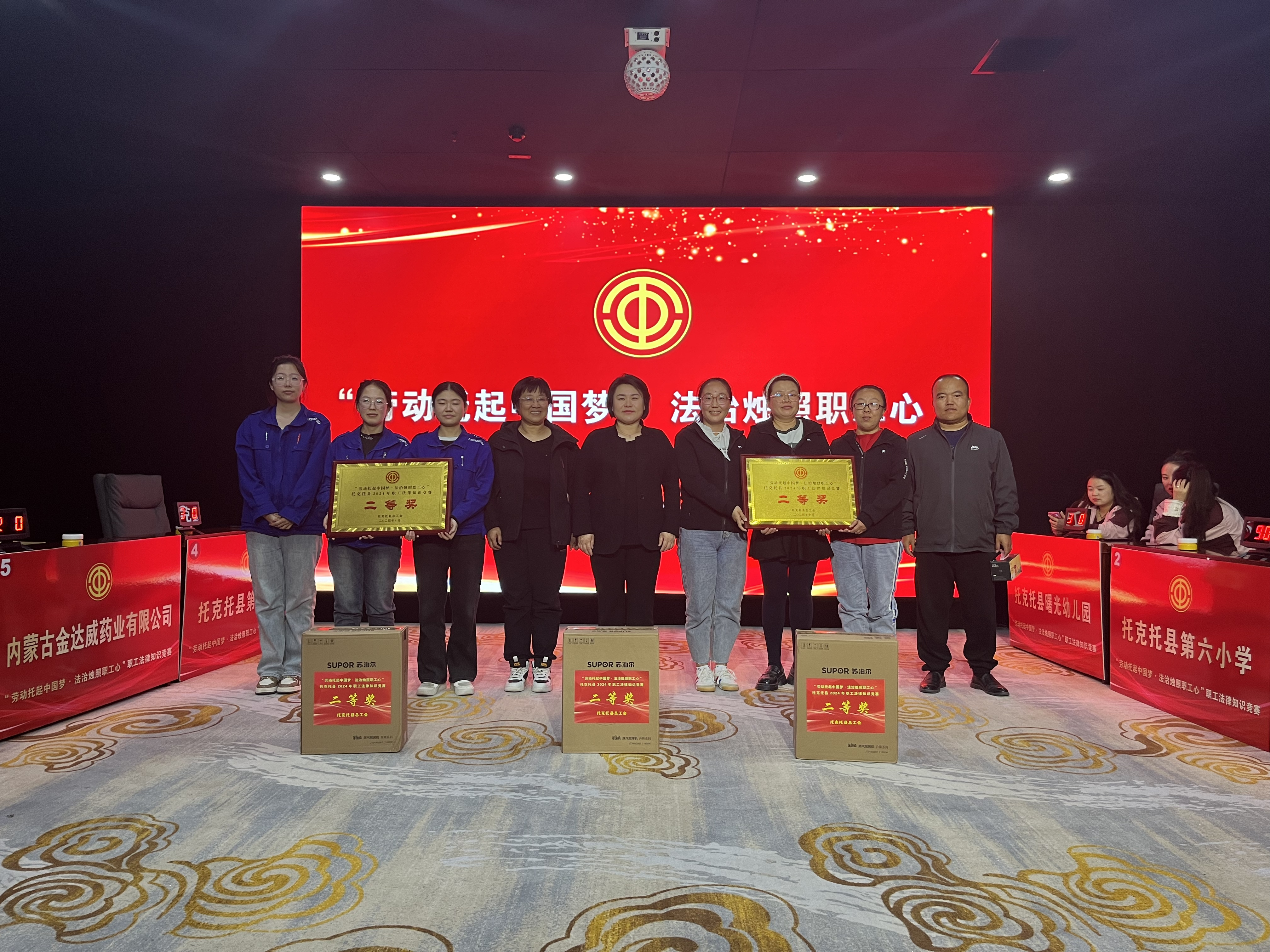 竞赛分为初赛和决赛两场进行,题目涉及涉及《宪法》、《劳动法》、《工会法》、《劳动争议调解仲裁法》、《劳动保护法》、《职业病防治法》、《安全生产法》、《内蒙古自治区企业工资集体协商条例》、《内蒙古自治区工会劳动法律监督条例》、《民法典》等法律法规及党史、职工医疗互助知识。经过笔试初赛,呼和浩特托克托经济开发区管理委员会、内蒙古金达威药业有限公司、托克托县第六小学、托克托县第三小学、金河生物科技股份有限公司、托克托县曙光幼儿园6个参赛队进入决赛。