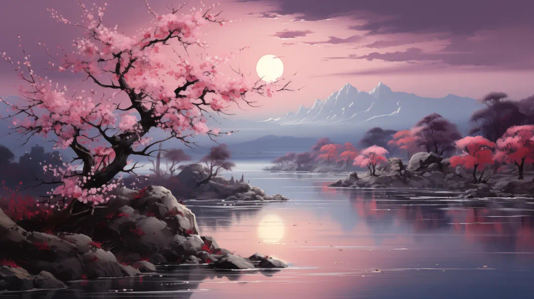 它深刻地构建了春江月的主题、月的形象、月的寓意,从此,一轮江月辉映在中华儿女的心幕和中华文化的星空,光亮如灯,朗照乾坤;一江春潮在中国的诗海和中国人的心海里,荡漾了一千三百多年。