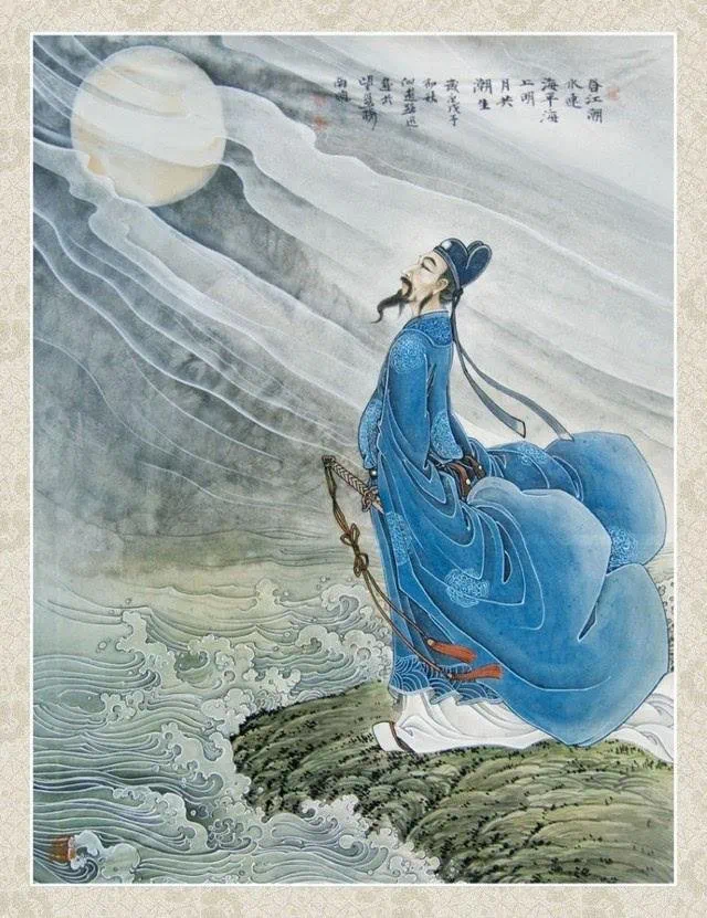 人生如若初见,人如月,心如月,轻轻地一问,却是重重的一抱,让你哭出泪来、哭出声来。泪涌心头,滴落江中,融入沧海,坦白在圣洁的月光下,鳞光闪闪,片片都是情。春江“月问”谁能答,“把酒问月”有李白:“今人不见古时月,今月曾经照古人”“古人今人若流水,共看明月皆如此”,机智与巧妙的答问,是绝对的真理,不会有错。北宋苏轼举樽遥问:“明月几时有?把酒问青天,不知天上宫阙,今夕是何年”,是人与月的心灵关照,天与人的相互感应。问世间万物,有谁堪比?读《春江花月夜》,随张若虚精骛八极、心游万仞。
