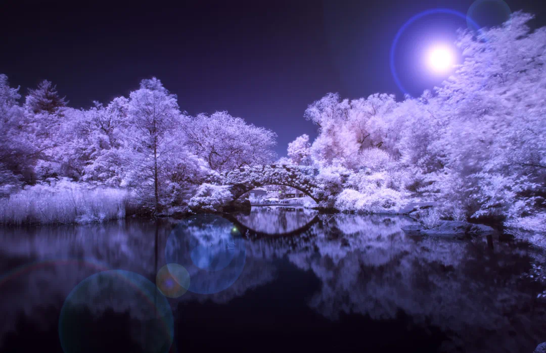 那是月在弹拨心弦。高洁在说,明朗澄净,缥缈虚无。明月本是潮生,质本洁来还洁去;月明自是天性,佛光源自天穹。月是春江的明灯,宇宙的夜明,在点亮,在引路,在普度。诗行里的月生、月明、月照,红尘里的望月、叹月、追月,在彼此映照。月在月光中走,风在风天里行,我在听自己的心跳。流霜不觉,沙汀不见,纤尘不染,月华如洗,尘世在这里洗净,微渺在这里长高,一切纷繁嘈杂被简化虚化净化。无有俗物能比月,是圣洁与高贵,是孤傲而清泠,是崇高与干净。春江有此花月夜,人人心里有春江。