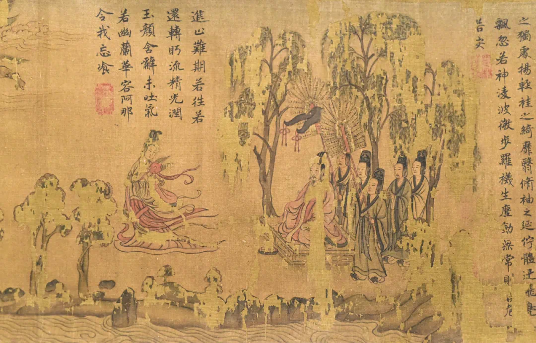 的确是神,是洛神,是魏晋时期的曹植(公元192年—232年)心中的宓妃。曹才子不仅腹中有七步成诗之才情,笔下更有腾云挪雾之万千气象。也是一个初春,也是初春的傍晚,他途经浩渺的洛川,下马歇息,林中信步,恍惚之间在洛水之滨、山岩之畔,路遇传说中的洛神宓妃。那翩若惊鸿、婉若游龙般的形影,那荣曜秋菊、华茂春松般的仪容,静若轻云之蔽月,行若流风之回雪。远望明亮像升腾中的朝霞姐姐,近看艳丽像绿波上的荷花妹妹。以至于“足往神留,遗情想像,顾望怀愁”,以至于“冀灵体之复形,御轻舟而上溯。浮长川而忘返,思绵绵而增慕”,以至于“夜耿耿而不寐,沾繁霜而至曙”,怅然盘桓而不愿离去,离去却留下千古名篇,情有独钟。读完《洛神赋》,你真的以为那是神女、美女吗?相信不会,那是对美的欣赏与向往。