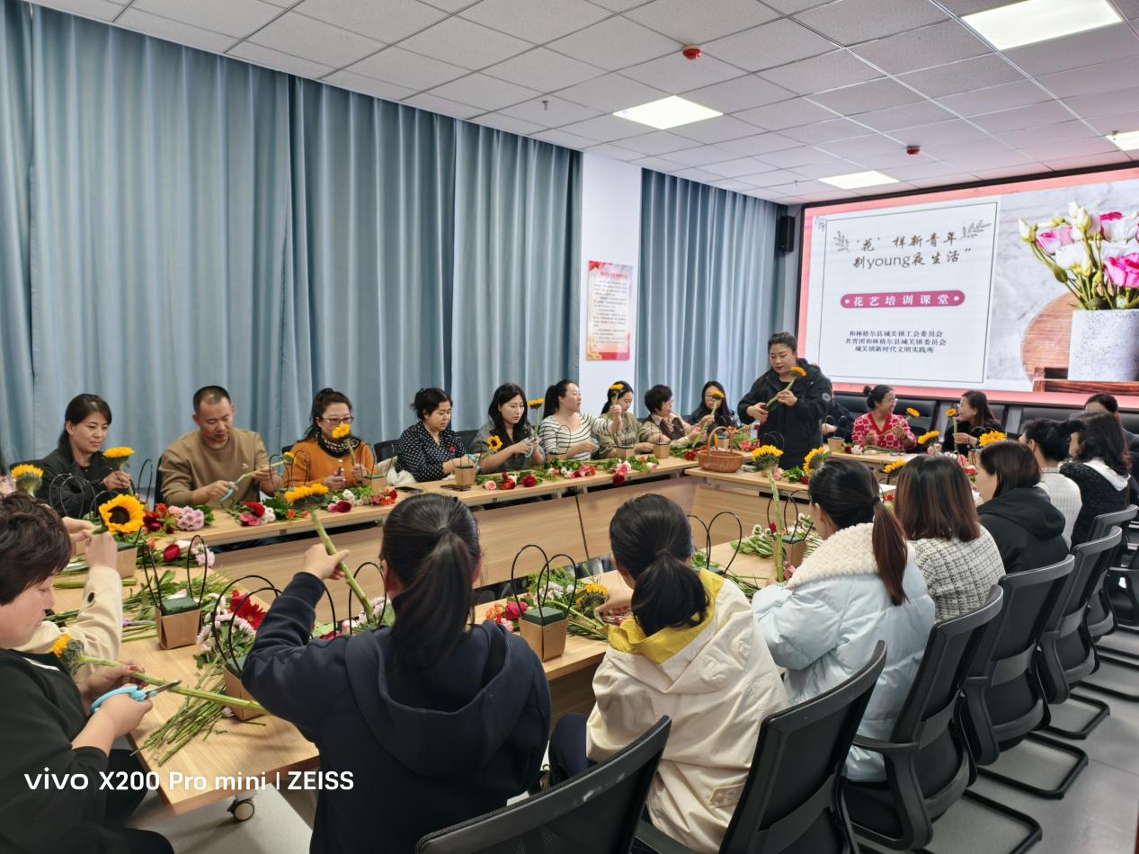 生活不止白天的忙碌,还有夜和花朵的芬芳。为进一步丰富职工精神文化生活,营造温馨和谐、健康向上的职工文化氛围,同时满足青年多元化发展需要,提升青年职工审美与动手能力,11月7日晚间,和林格尔县城关镇工会委员会联合共青团城关镇委员会、城关镇新时代文明实践所在昭君道社区开展了“‘花’样新青年·别young夜生活”第二期花艺培训班,30余名职工积极参与活动。