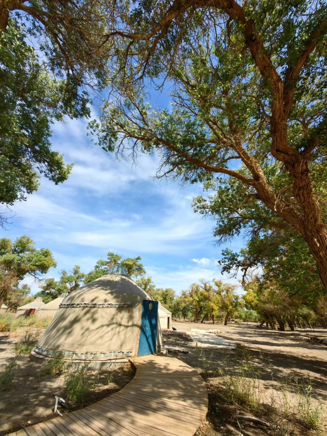 ▲胡杨林下的蒙古包。