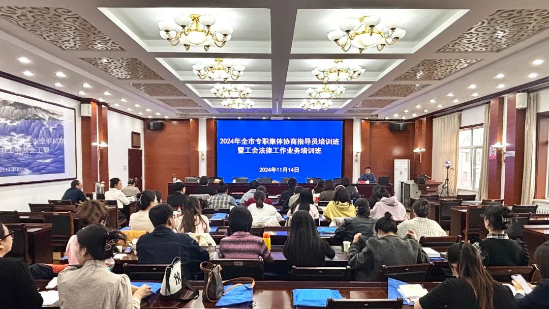 为进一步提升全市工会法律工作干部和专职集体协商指导员的综合素质和履职能力,切实维护职工合法权益,推动构建和谐劳动关系,11月14日,呼和浩特市总工会举办全市工会法律工作业务暨专职集体协商指导员培训班,全市各旗县区、经济技术开发区的40余名专职集体协商指导员和工会法律相关工作人员参加培训。
