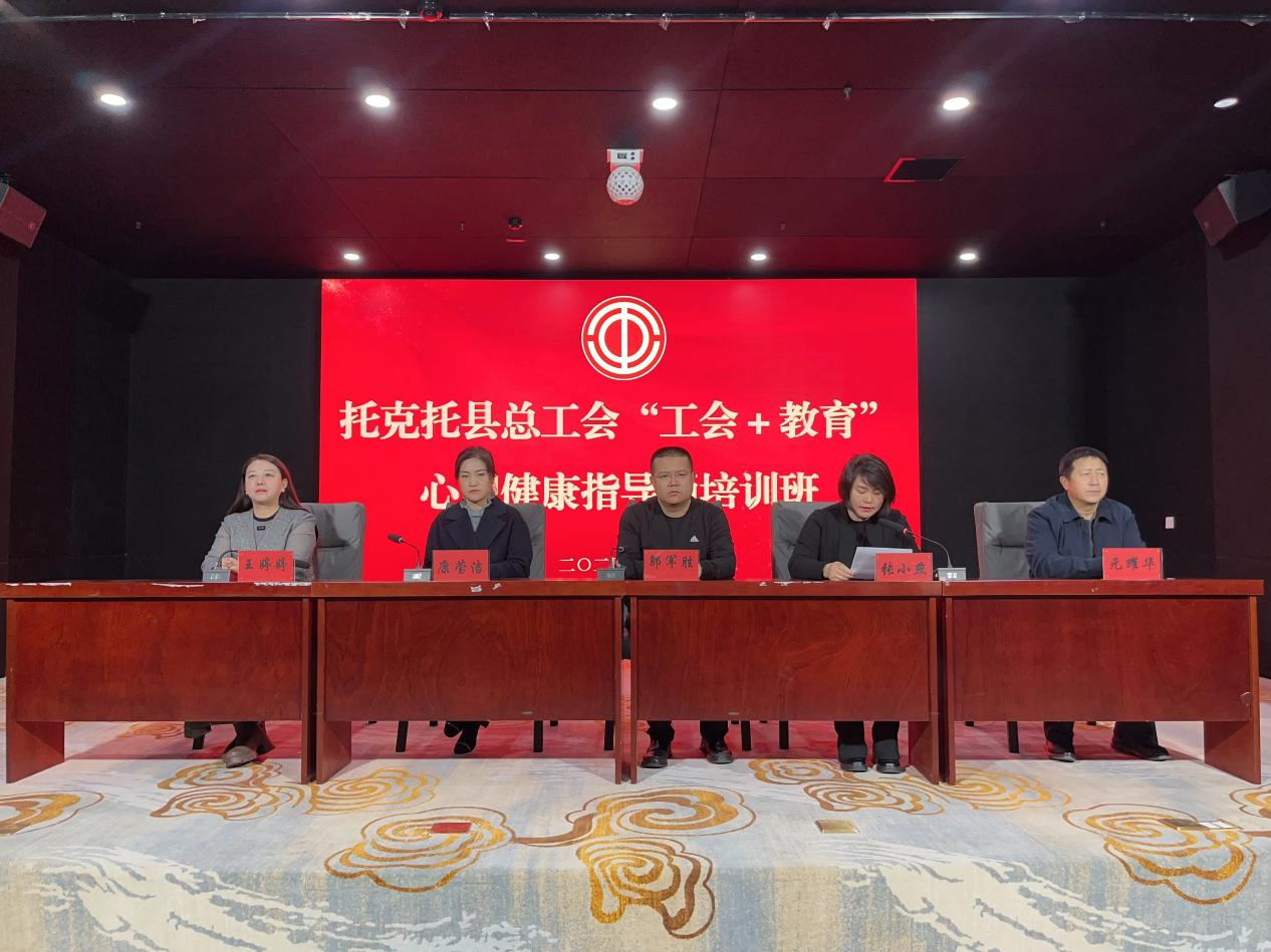 11月12日上午,托县总工会“工会+教育”心理健康指导师培训班在总工会工人文化宫多功能厅举行开班仪式。托县总工会党组书记、常务副主席邬军胜,党组成员、副主席张小燕、元耀华,托县教育局党组成员、副局长康莹洁,呼和浩特市基础教育评估协会会长王婷婷出席开班仪式。托县总工会副主席张小燕主持开班仪式。