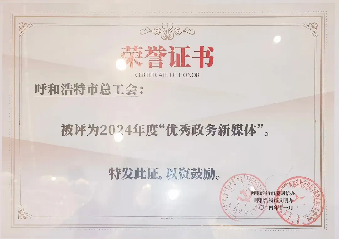 本次大会上,呼和浩特市总工会微信公众号被评为2024年度“优秀政务新媒体”。