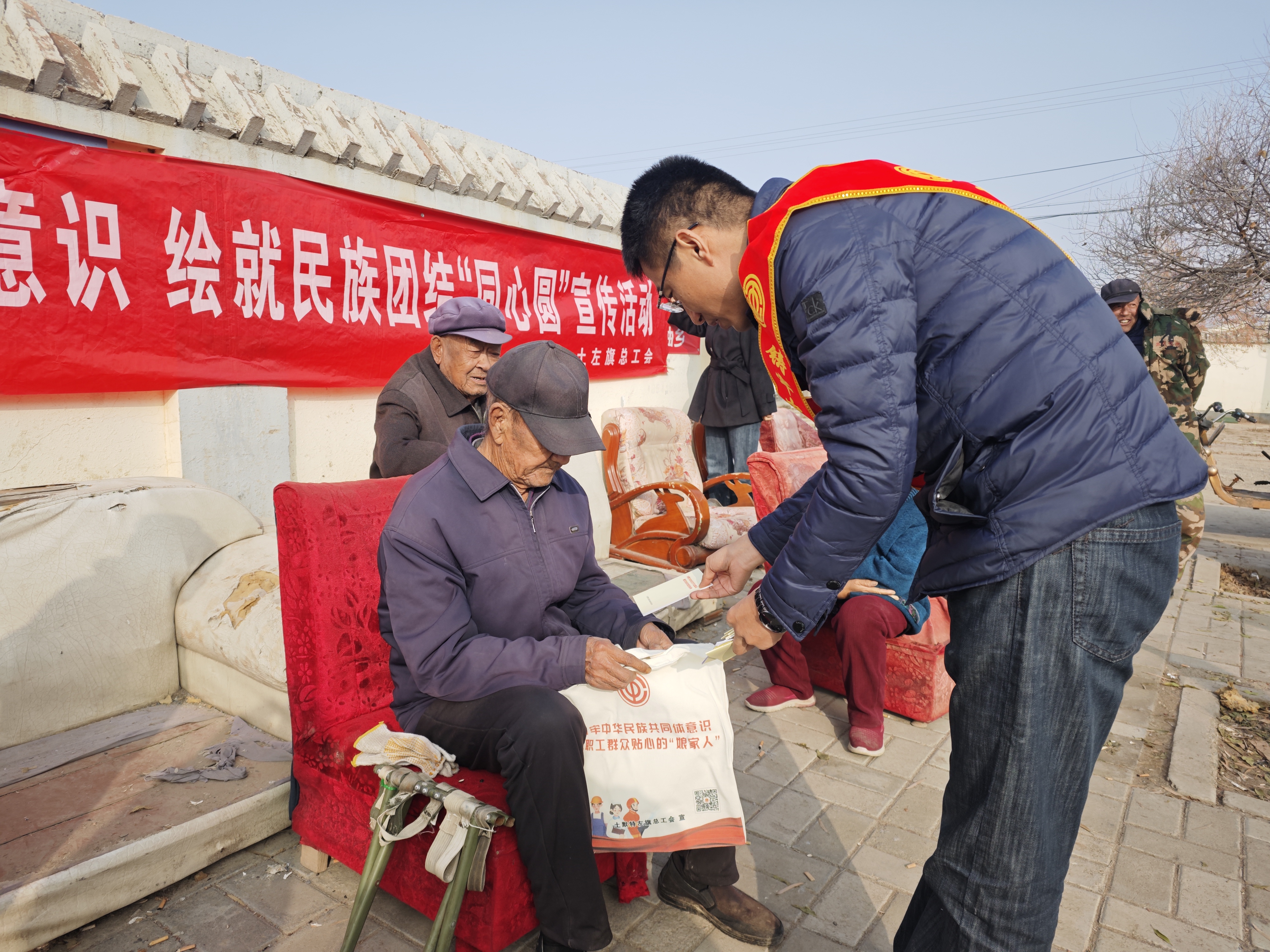 为深入推进铸牢中华民族共同体意识,扎实开展民族团结进步宣传教育,不断巩固平等、团结、互助、和谐的民族关系,弘扬民族团结主旋律,传递民族团结正能量,提高各族群众对民族政策的知晓度和认同感。11月20日,土左旗总工会在北什轴村开展铸牢中华民族共同体意识 绘就民族团结“同心圆”宣传活动。