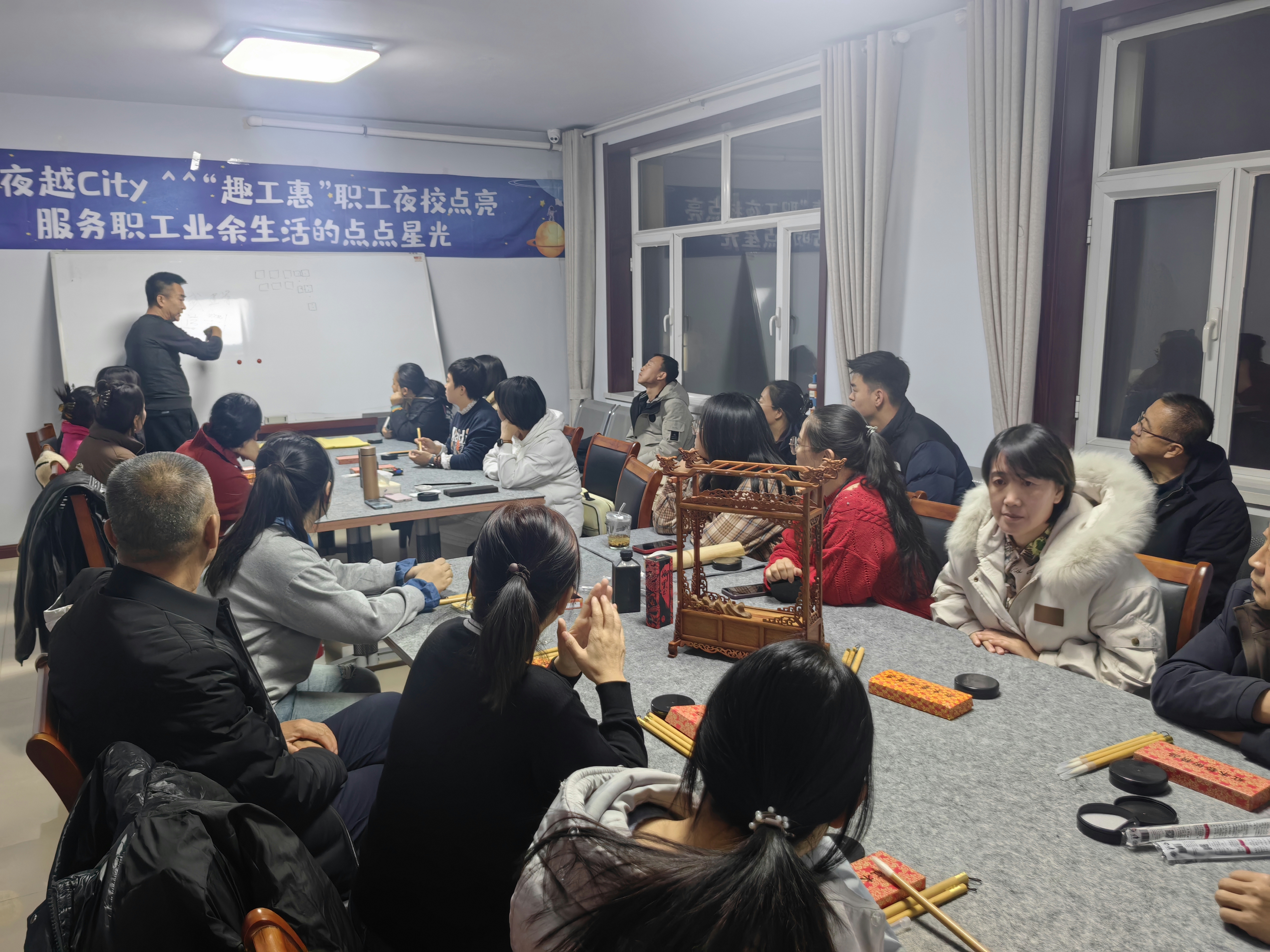 为丰富职工文化生活,提升职工艺术修养,土左旗总工会经前期调研推出的职工夜校秋季班软笔书法课程于11月27日下午正式开班。