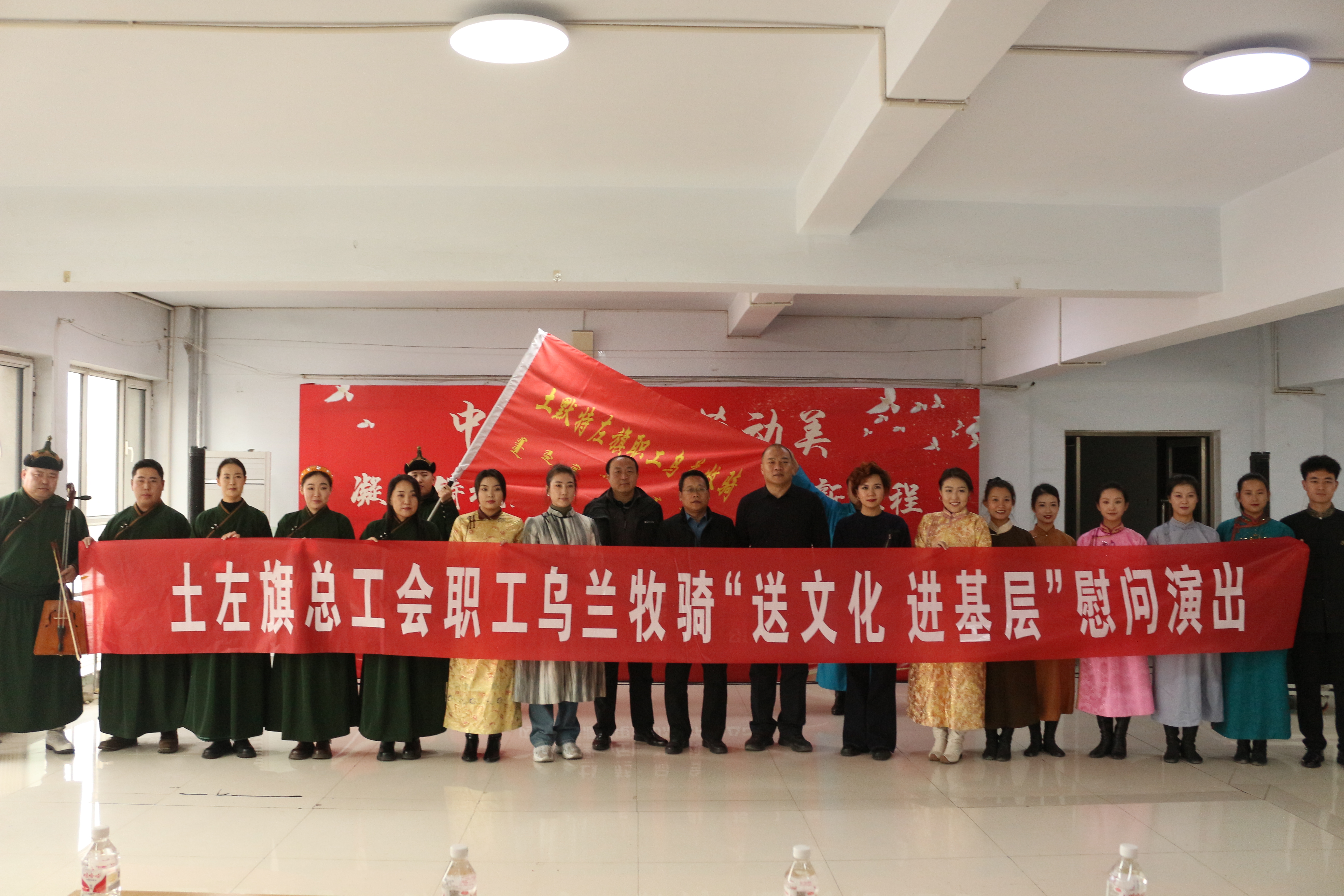 为将党的二十大和二十届三中全会精神的方针政策传达到千家万户,讲好民族故事,传播好党的好声音,将志愿服务和文化惠民工作相结合,打通公共文化服务的“最后一公里”,真正实现文化惠民、共建共享。11月27日下午,土左旗职工乌兰牧骑走进内蒙古能源发电金山热电公司开展“送文化 进基层”授旗仪式暨慰问演出。旗总工会党组书记、常务副主席伊赫,旗总工会党组成员、副主席荣晔,内蒙古能源发电金山热电公司党委委员、纪委书记王斌,党委委员、工会主席张小平及60余名职工参加活动。