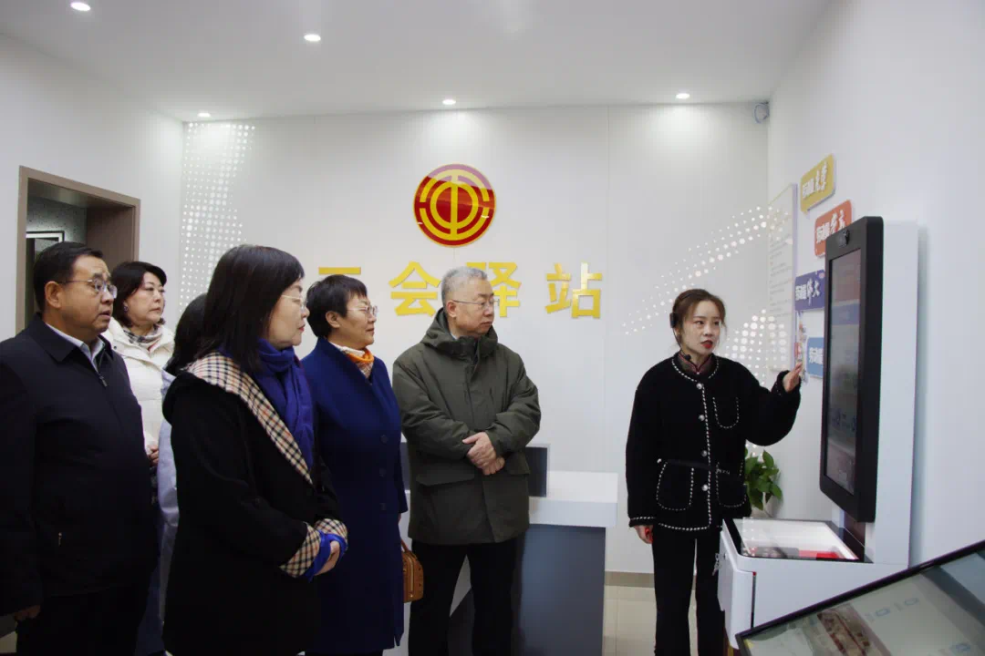 调研组一行首先观摩了呼和浩特市总工会打造的两家功能性工会驿站。呼和浩特市总工会机关一楼功能型工会驿站面积78平米,分为4大区域包含免费理发、心理咨询、入会“有奖派物”“一键呼叫马上办”“工会心愿墙”、在线诊疗等22项功能服务,以满足职工群众的多样化需求。玉泉区俪城商贸圈功能型工会驿站位于南二环和石羊桥交会路口,人流量大,驿站配备了微波炉、医药箱、图书角等多项功能,为新就业形态劳动者和户外劳动者提供24小时可以歇脚取暖的地方。