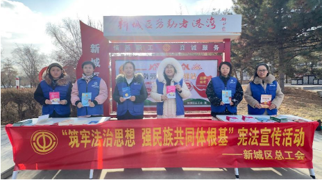 在全国第七个“宪法宣传周”暨第十一个“国家宪法日”之际,为深入学习宣传习近平法治思想,进一步弘扬宪法精神,维护宪法权威,推动宪法全面实施,12月6日,新城区总工会在劳动者港湾体育场站开展“筑牢法治思想,强民族共同体根基”宪法宣传活动。