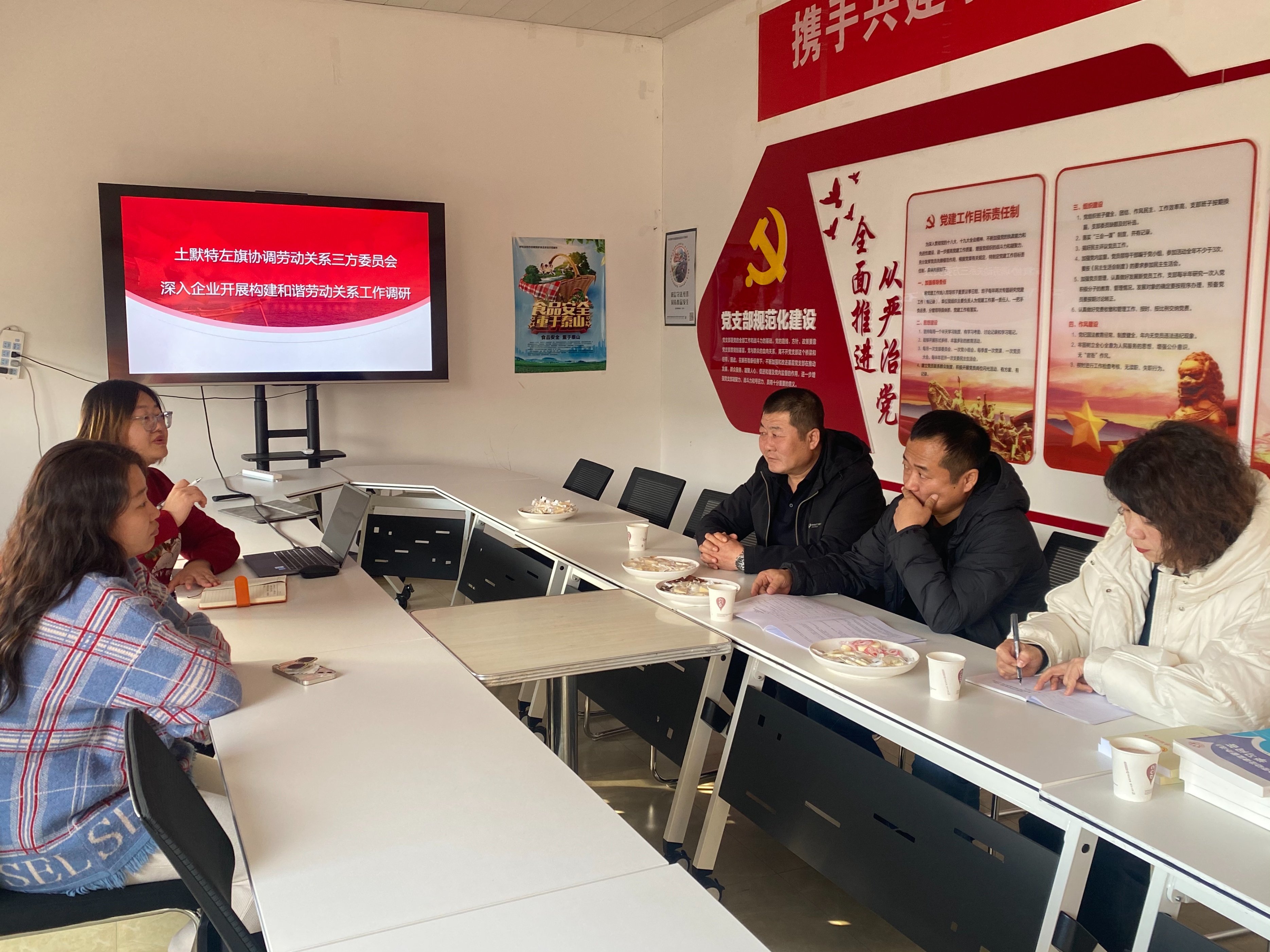 在走访调研期间,土默特左旗协调劳动关系三方委员会的工作人员与企业管理层及职工代表开展了深入的座谈与交流。企业分别详尽阐述了其在构建和谐劳动关系方面所开展的工作,并全面介绍了企业的生产经营现状、劳动用工状况、劳动合同的签订比率、职工的工资福利待遇、社会保险的缴纳情况,以及劳动安全卫生等方面的具体情形。针对企业在劳动关系领域面临的问题,委员会工作人员进行了详细的解答,明确了构建和谐劳动关系所具有的重大意义与深远价值,要求企业务必严格遵照相关法律法规开展运营活动,积极引导企业构建并优化集体协商机制,保障劳企双方权益的平衡与共荣;同时,督促企业组建工会劳动法律监督委员会,并全面推行“一函两书”制度,借助工会组织强大的监督职能,促进企业劳动法律法规得以精准且切实地贯彻执行,全方位保障职工的合法权益不受侵害;要求企业切实保障职工的合法权益,积极鼓励职工主动参与到企业的管理事务当中,形成企业与职工命运共同体的良好格局,携手共促企业稳健、可持续地蓬勃发展。