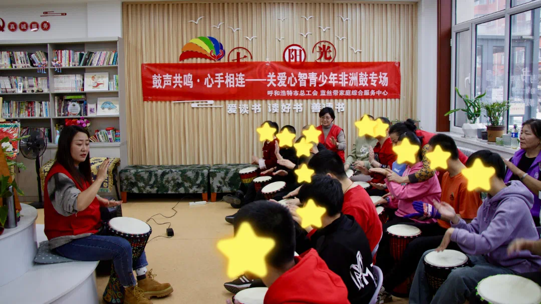 11月26日,呼和浩特市总工会职工志愿服务队在新城区三角线社区开展了“鼓声共鸣·心手相连”关爱心智青少年非洲鼓专场活动,志愿者们耐心辅助心智青少年学习非洲鼓演奏技巧,共同奏响和谐乐章,传递温暖与关爱。