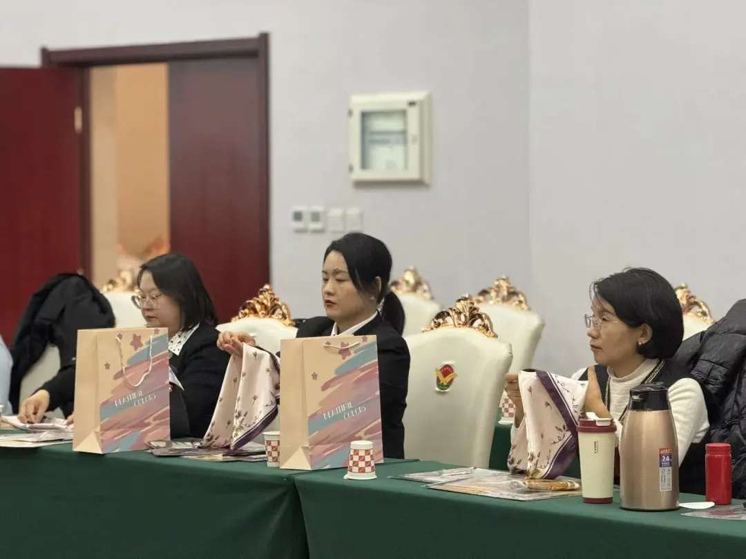 随着活动的深入,她们纷纷尝试了更多的系法,有的职工将长丝巾披在肩膀上搭配休闲装,营造出一种随性又优雅的感觉;有的职工则用长条丝带系在腰间,为正装增添了一抹亮色。大家热情高涨,现场充满了欢声笑语,相互分享着自己的创意和成果。