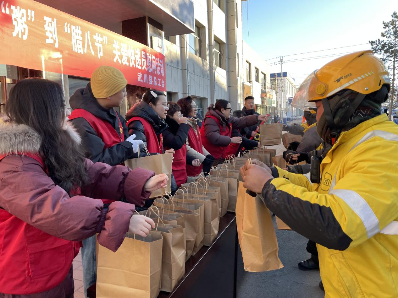 一碗腊八寄深情,温暖常伴您“粥”围。腊八节是中国的传统节日,为弘扬中华民族传统文化,营造良好的节日氛围,向户外劳动者送去最真挚的节日祝福。1月7日,武川县总工会组织开展“腊八情浓,粥暖人心”主题活动,分别在县总工会、城市管理综合执法局和环卫驿站设三个慰问点为500多名环卫工人、快递小哥、外卖小哥送上暖暖的爱心腊八粥礼袋。
