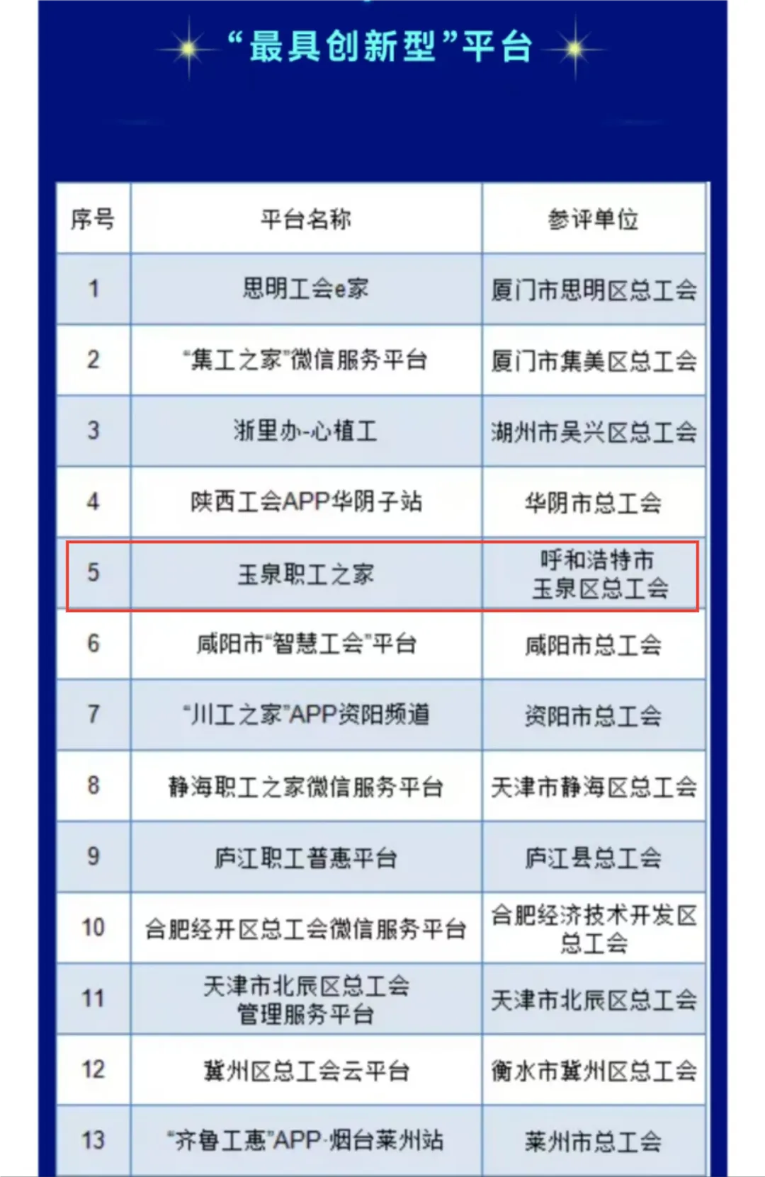 普惠服务优秀平台评选结果