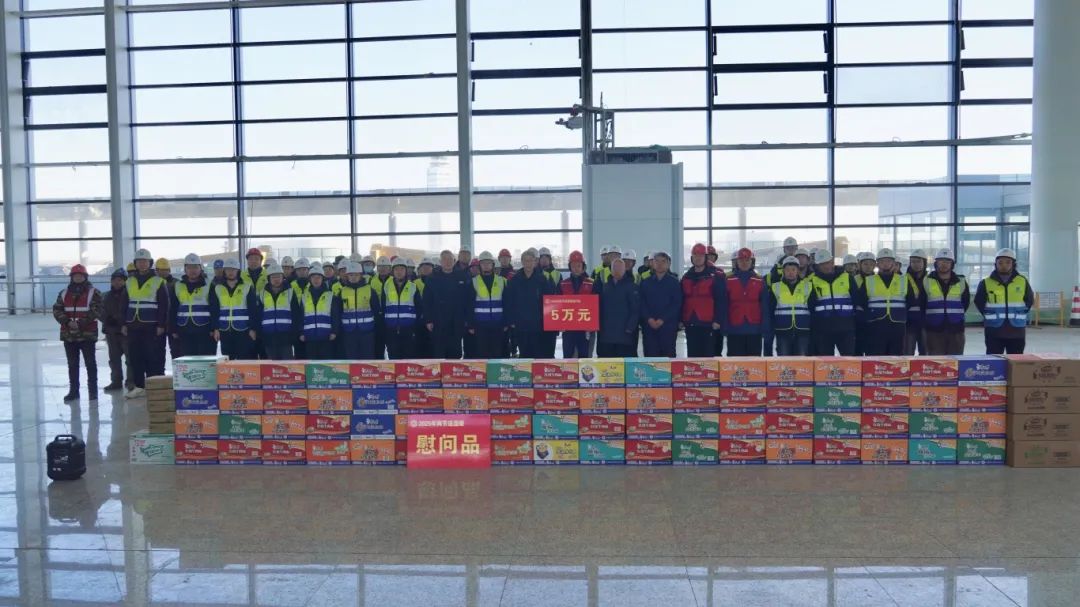 在和林格尔新机场,慰问团调研了解新机场建设情况,看望慰问奋战在新机场建设一线的职工,仔细询问他们在冬季施工中的困难和需求,对他们不畏严寒、坚持奋战的敬业精神致以崇高敬意,并叮嘱大家要时刻注意施工安全,合理安排作息时间,确保以健康的体魄和饱满的精神状态投入项目建设中。