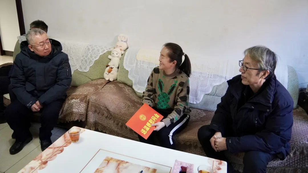 在困难职工兰彩霞家中,慰问团详细询问她的身体状况、家庭收入、子女就学等情况,并勉励她和家人要树立信心、战胜困难,再创美好幸福生活。