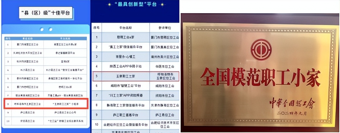 “玉泉职工之家”小程序2023年、2024年连续两年分别被全国总工会授予“互联网+工会普惠服务”——“县(区)级十佳”平台和“最具创新型”平台。培育推荐的内蒙古草原红太阳食品股份有限公司一号车间喜获“全国模范职工小家”荣誉称号。