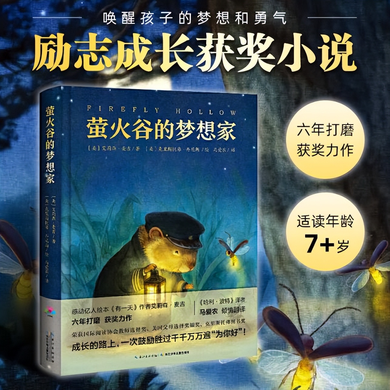这本书的主角是一只叫萤萤的“追月小勇士”——她白天是萤火谷的乖宝宝,晚上却偷偷练习飞行,梦想飞向月亮!
