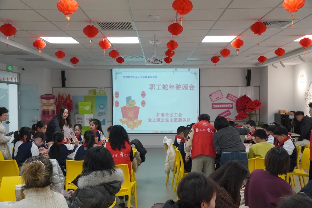 1月10日,呼和浩特市总工会职工志愿服务队在呼和浩特市锡林社区成功举办了“拥爱启新程·逐光向暖行--关爱心智青少年”为主题的专场联欢会。此次联欢会特别为50名孩子设计,采用茶话会的形式,职工志愿者们与孩子们共聚一堂,共同祝福春天,展望未来,营造了一个温馨而充满希望的氛围。